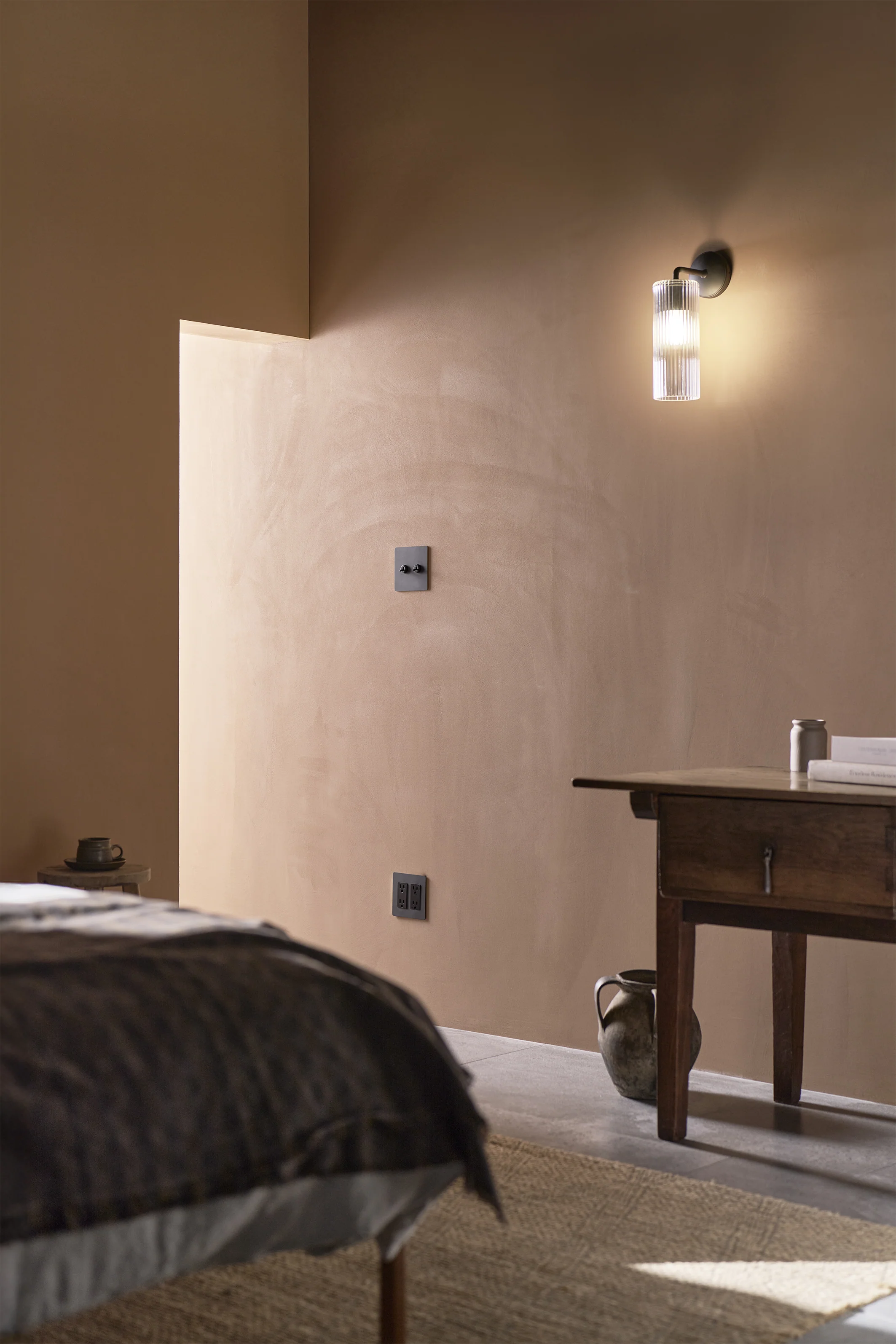The fluted glass shade has vertical grooves to help diffuse the light.